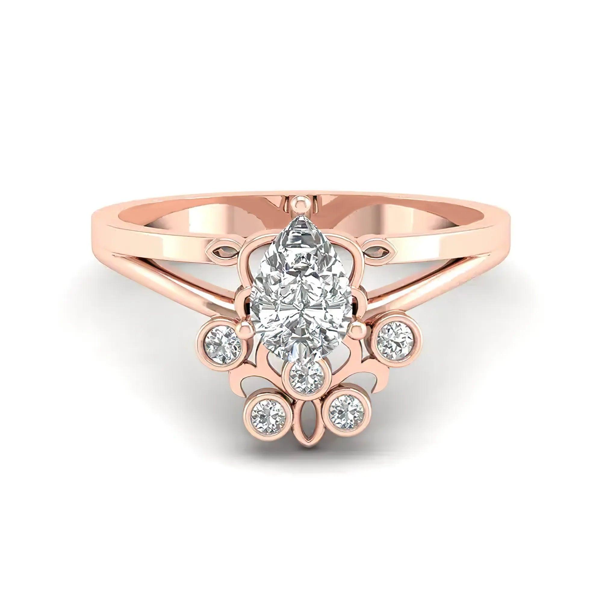 Masterfully designed with prong setting for the main gemstone and nail setting for side stones.